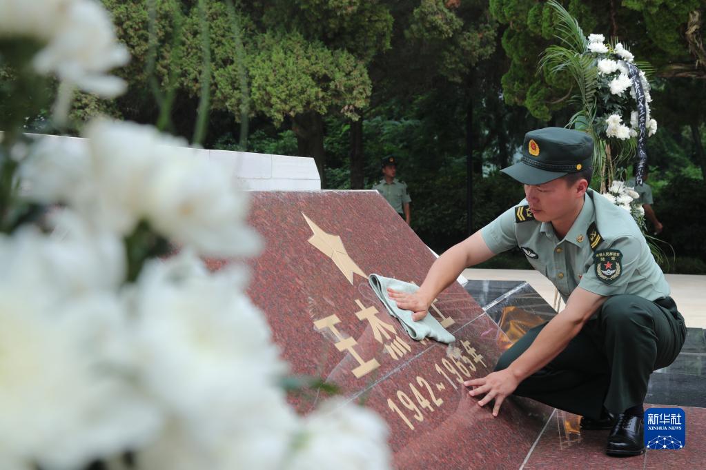 在王杰犧牲54周年前夕,陸軍第71集團軍某合成旅“王杰班”組織祭掃(2019年7月10日攝)。新華社發(李志浩 攝)
