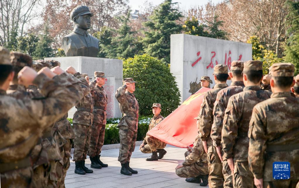 陸軍第71集團軍某合成旅王杰生前所在連官兵組織黨員重溫入黨誓詞(2018年12月14日攝)。新華社發(白俊峰 攝)
