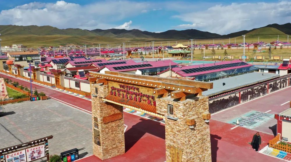 這是9月9日拍攝的甘肅省甘南藏族自治州碌曲縣尕海鎮尕秀村村貌(無人機照片)。新華社記者 陳斌 攝