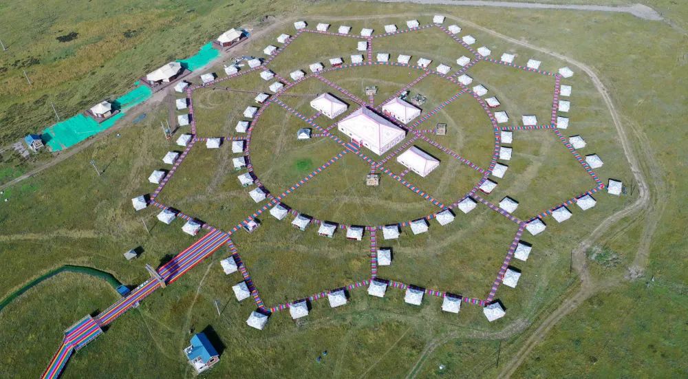 這是9月9日拍攝的甘肅省甘南藏族自治州碌曲縣尕海鎮尕秀村帳篷城景區(無人機照片)。新華社記者 陳斌 攝