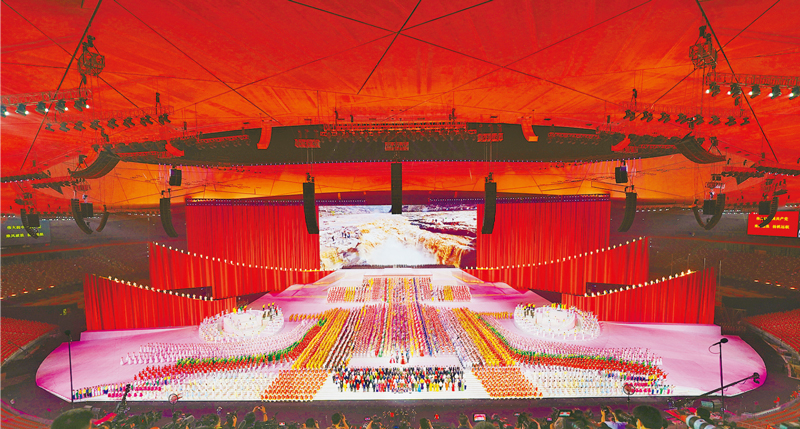 2021年6月28日晚,慶祝中國共產黨成立100周年文藝演出《偉大征程》在國家體育場盛大舉行。這是歌曲《領航》的演出現場。 新華社記者 邢廣利/攝
