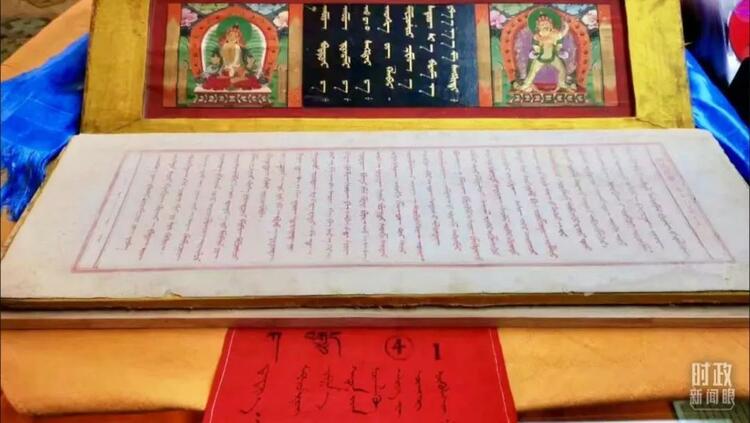 △《甘珠爾經(jīng)》是研究佛學(xué)、哲學(xué)、語言、民族文化交流等方面的重要文獻(xiàn),被稱為蒙古文的百科全書。目前內(nèi)蒙古大學(xué)圖書館珍藏的版本,是世界上最完整的版本。(總臺央視記者張曉鵬拍攝)