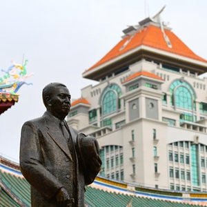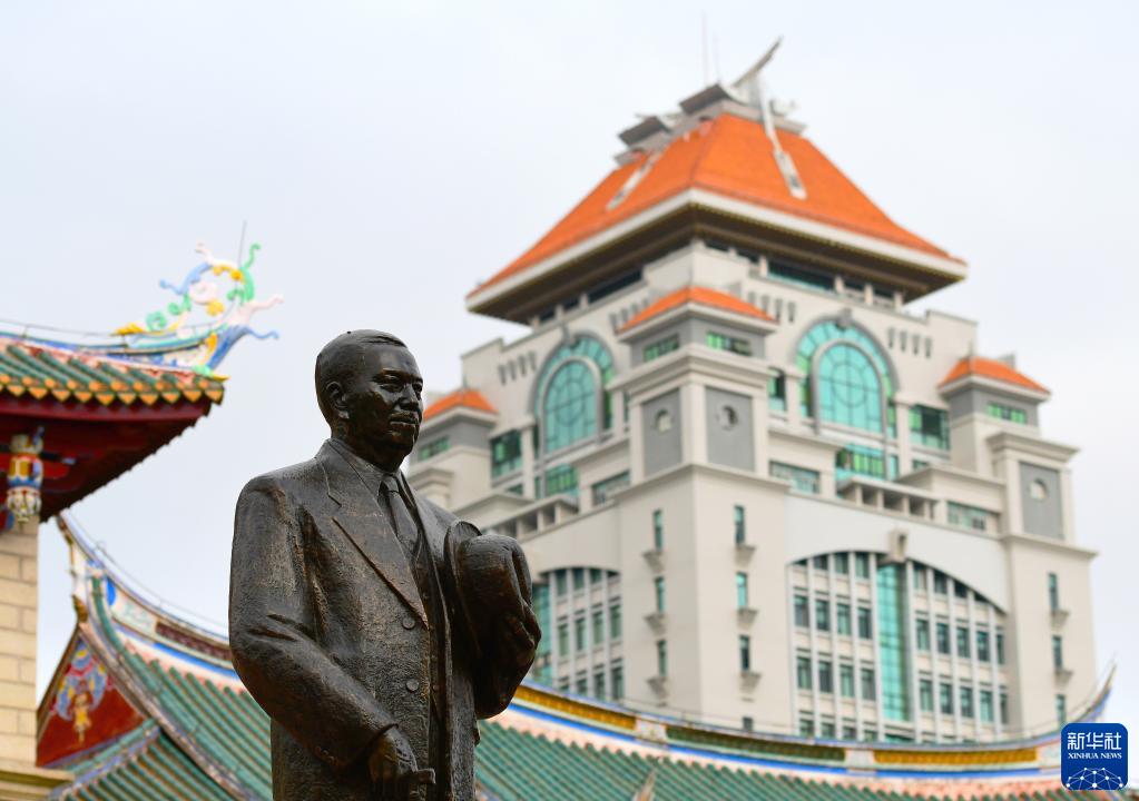 這是廈門大學里的陳嘉庚雕像(4月1日攝)。新華社記者 魏培全 攝