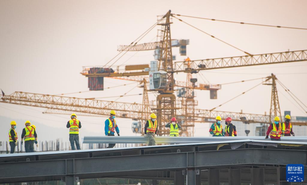 中建三局的建設工人在武漢雷神山醫院建設工地施工(2020年2月4日攝)。新華社記者 肖藝九 攝