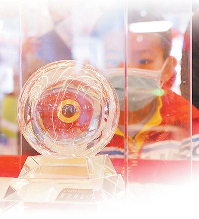 國家“十三五”科技創新成就展上展出的月球樣品。