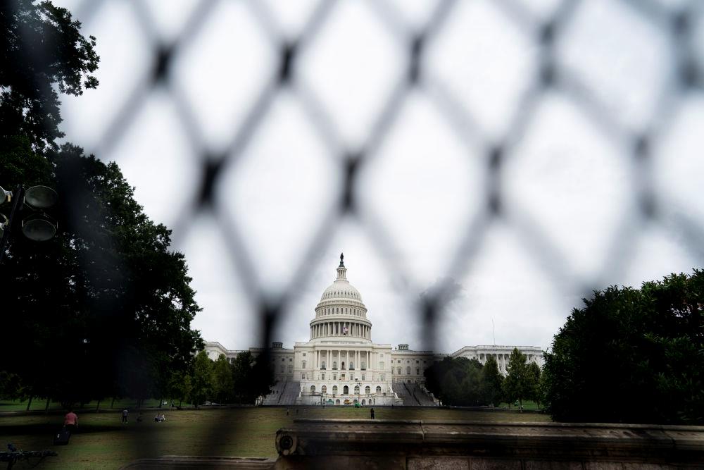 △9月17日在美國首都華盛頓透過隔離圍欄拍攝的國會大廈