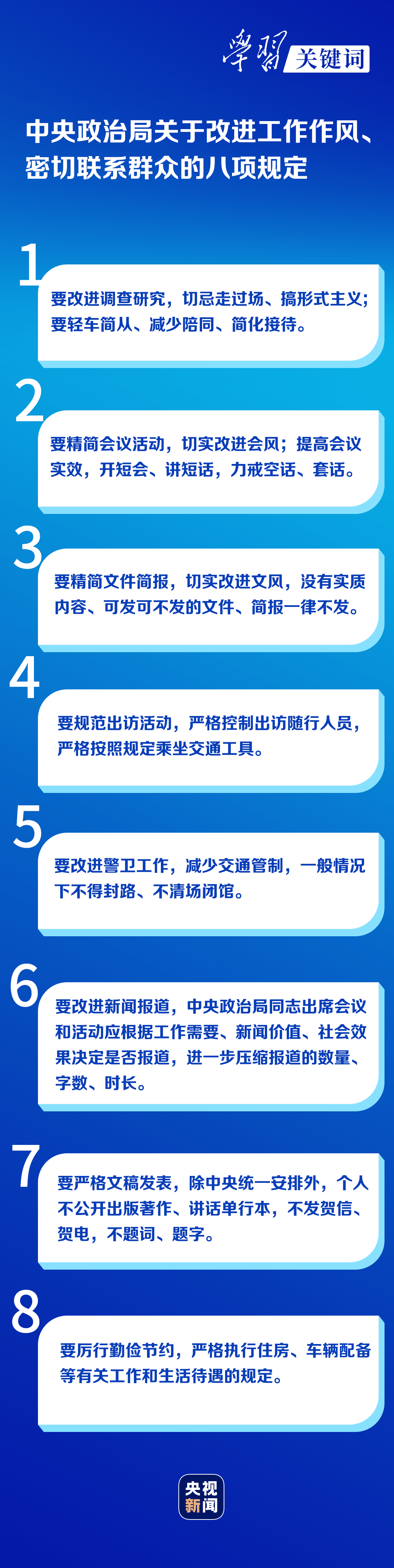 “中央八項規定不是五年、十年的規定,而是長期有效的鐵規矩、硬杠杠。”