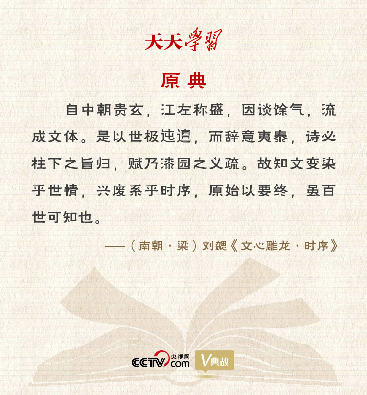 《文心雕龍》是中國古代文學理論專著。書中較全面地總結(jié)了前代的文學現(xiàn)象,論述了文學中的一些重要問題。其中,針對文學發(fā)展與時代變遷的關(guān)系,提出了“文變?nèi)竞跏狼椋d廢系乎時序”的著名論斷。
