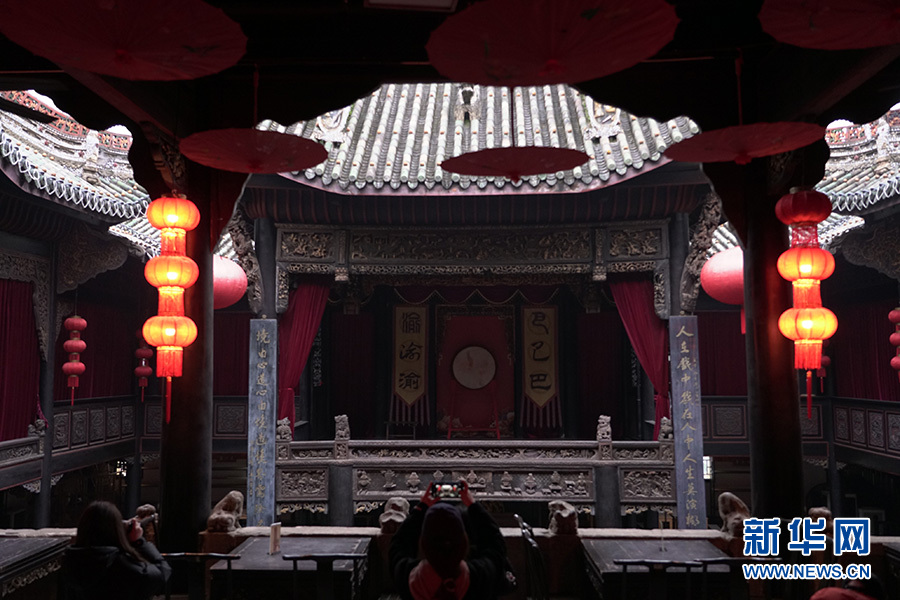 圖為湖廣會館內(nèi)的古戲臺。新華網(wǎng) 韓夢霖 攝