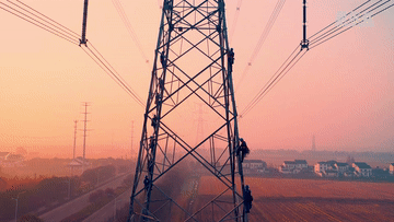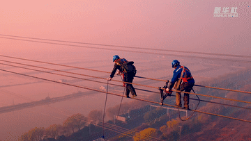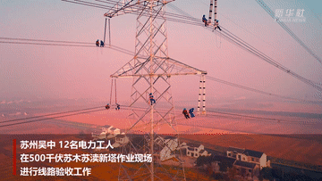 在蘇州吳中500千伏蘇木蘇瀆新塔作業(yè)現(xiàn)場(chǎng),12名電力工人徒手爬上80米高的高壓線上進(jìn)行線路驗(yàn)收工作。他們?nèi)缥枵撸诟呖蒸骠嫫鹞瑁U隙绽锏挠秒姲踩刈o(hù)一方安寧。