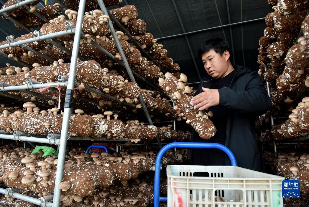 12月21日,張亞濤在香菇大棚內(nèi)采摘香菇。