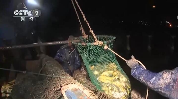 晚上六點多,工人們打開船艙,將連著起錨機的網兜伸進養殖網箱內。當網兜中裝滿大黃魚后,起錨機將網兜吊離水面,拉高到船艙正上方時,船員則用力一拉網兜下的一根繩,一條條仿佛鍍金的大黃魚從開口的網兜中落入艙內。不到1小時,一個深水網箱的大黃魚全部捕撈進艙。當天晚上共起捕8000余斤大黃魚,一半已被上海、舟山和嵊泗當地的客戶預定,按規格不同,價格在每斤30—50元。