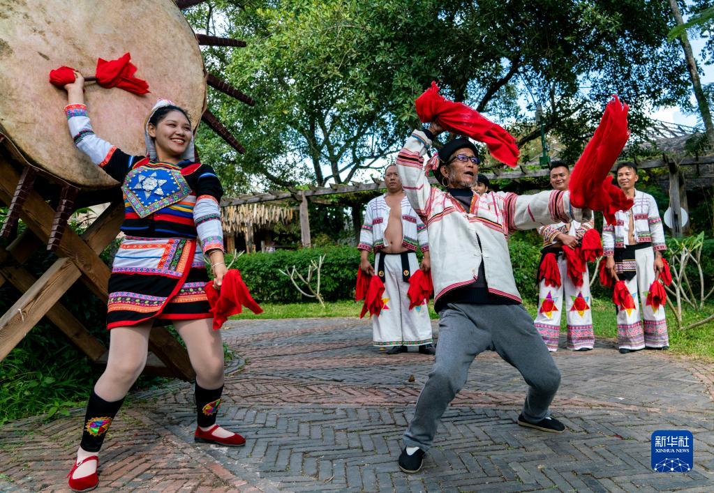 在不遠處的旅游景區基諾山寨,游客聚在大鼓前和當地群眾共舞,古老的民族文化被激發出無限的生命力。