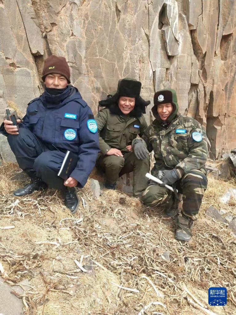 野生動物保護員強巴(右)和同事們在一起(資料照片)。新華社發(受訪者供圖)