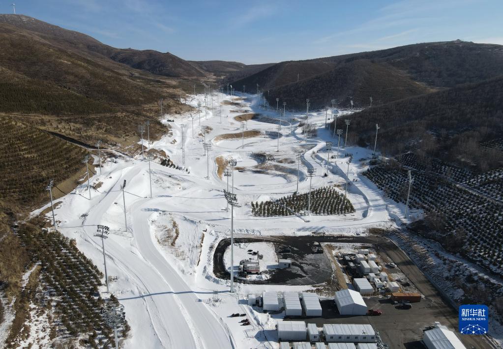 這是12月23日拍攝的張家口賽區國家冬季兩項中心的賽道(無人機照片)。