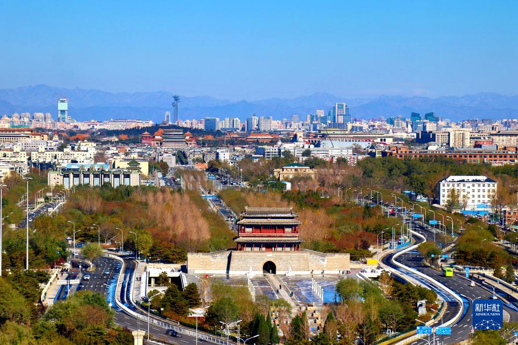 北京永定門城樓及周邊景色(11月8日攝)。新華社發(牛云崗 攝)