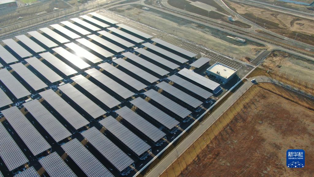 這是在遼寧省沈陽市的華晨寶馬鐵西新工廠拍攝的光伏發電設施(12月28日攝,無人機照片)。新華社記者 楊青 攝