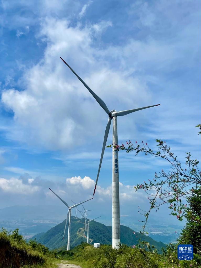 這是在湖南省汝城縣拍攝的風力發電機(8月23日攝)。新華社記者 蘇曉洲 攝