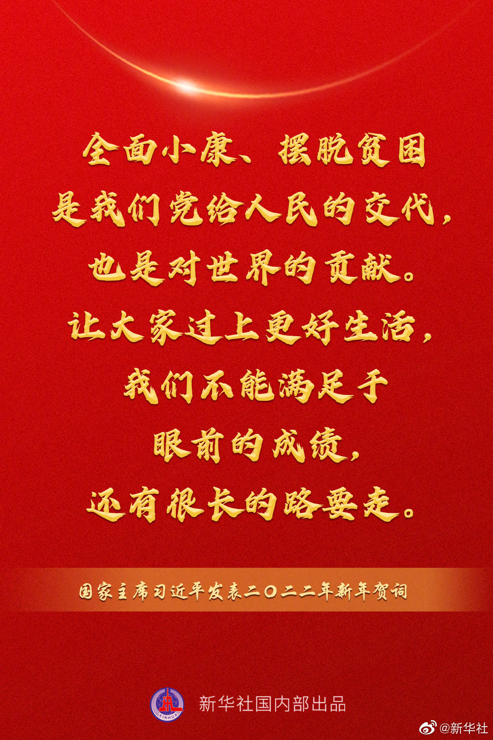 國家主席習近平發表二〇二二年新年賀詞,一起來看金句。