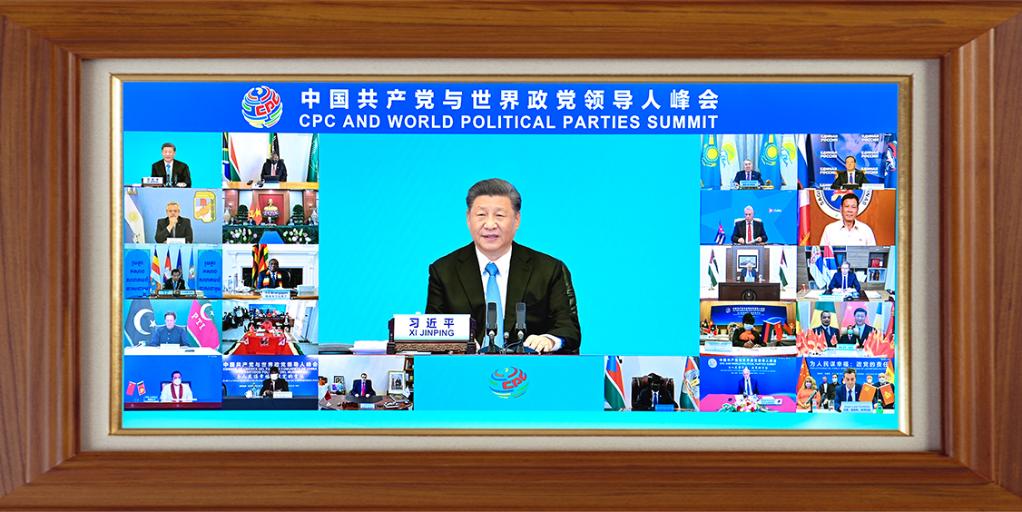 7月6日晚,中國(guó)共產(chǎn)黨與世界政黨領(lǐng)導(dǎo)人峰會(huì)在北京人民大會(huì)堂以視頻連線方式舉行。長(zhǎng)34米、高6米的巨型組合屏幕上,習(xí)近平總書(shū)記同160多個(gè)國(guó)家的500多個(gè)政黨和政治組織的領(lǐng)導(dǎo)人“同框”。