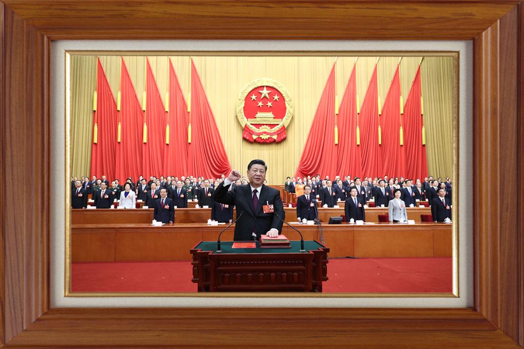 這一張工作照,是習(xí)近平連任國(guó)家主席后,向憲法宣誓。自發(fā)表2019年新年賀詞起,就一直擺在書(shū)架上。