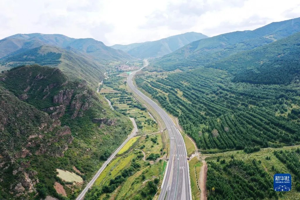 這是2021年8月31日拍攝的延崇高速河北段延伸工程張家口市崇禮白旗互通樞紐(無人機照片)。新華社發(武殿森 攝)