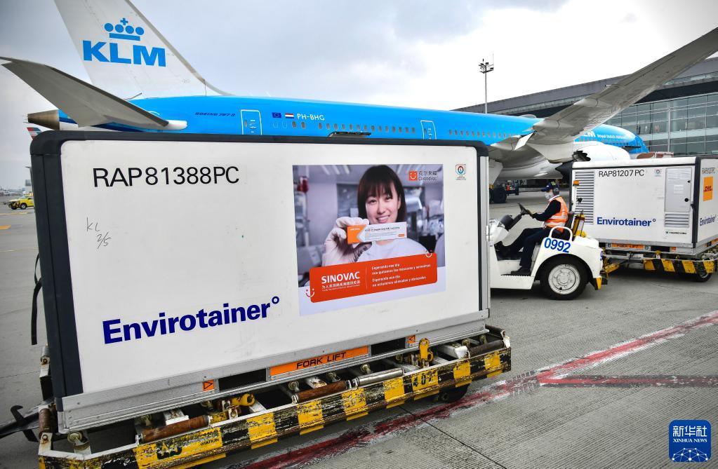 這是2021年3月6日在哥倫比亞波哥大埃爾多拉多國際機(jī)場拍攝的剛剛完成卸貨的科興疫苗。新華社發(fā)(哥倫比亞總統(tǒng)府供圖)