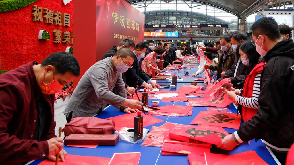 圖為廣州南站在舉行“送萬福·進萬家”文化公益活動。廣鐵集團 供圖