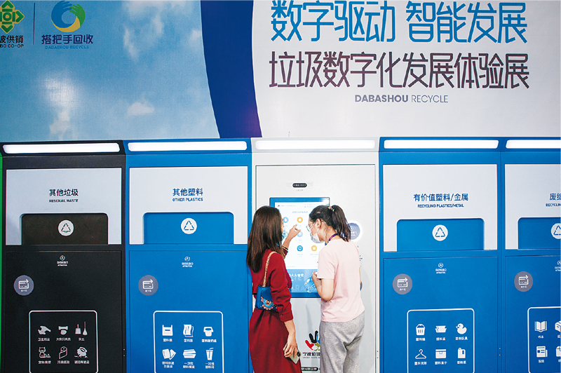 數(shù)字經(jīng)濟(jì)發(fā)展速度之快、輻射范圍之廣、影響程度之深前所未有,發(fā)展數(shù)字經(jīng)濟(jì)是把握新一輪科技革命和產(chǎn)業(yè)變革新機(jī)遇的戰(zhàn)略選擇。圖為2021年10月15日,在2021世界數(shù)字經(jīng)濟(jì)大會(huì)暨第十一屆智博會(huì)上,垃圾數(shù)字化設(shè)備受到客商青睞。 求是圖片 董小飛/攝