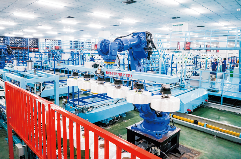 近年來,江蘇省蘇州市吳江區(qū)大力推進(jìn)制造業(yè)智能化改造和數(shù)字化轉(zhuǎn)型。圖為2021年5月14日,位于吳江區(qū)盛澤鎮(zhèn)的恒力化纖工業(yè)絲智能車間內(nèi),機(jī)器人在自動(dòng)作業(yè)。 新華社記者 李博/攝