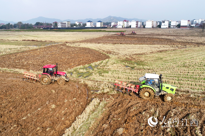 1月19日,江西省撫州市東鄉區小璜鎮小璜村的農田里,旋轉犁正在對農田進行機械化作業。隨著氣溫回升,江西省撫州市東鄉區各地紛紛拉開春耕備耕序幕,田間地頭呈現出一派忙碌景象。