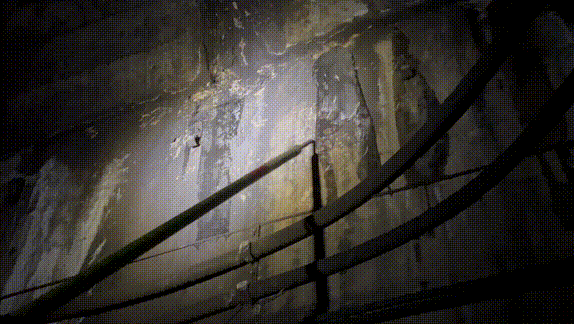 隧道里越走越黑,工人不但要用強(qiáng)光手電檢查拱頂和側(cè)壁,還要注意腳下——扣件、軌枕、電纜盒很容易把人絆倒。