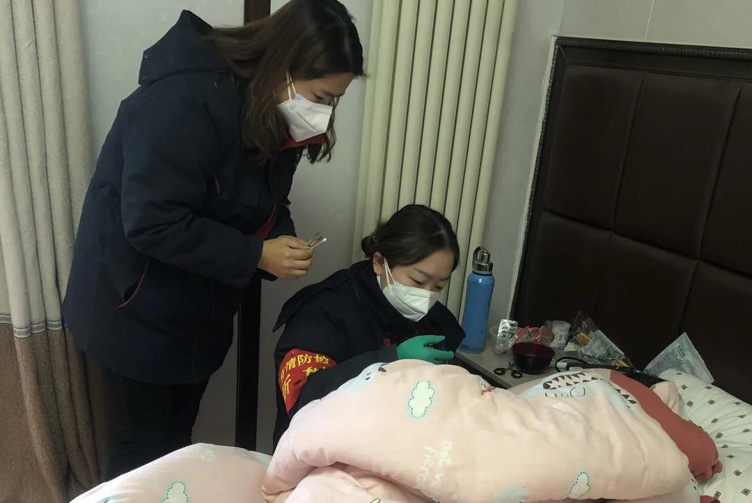 社區工作人員在為賈女士打針。新城區委組織部供圖