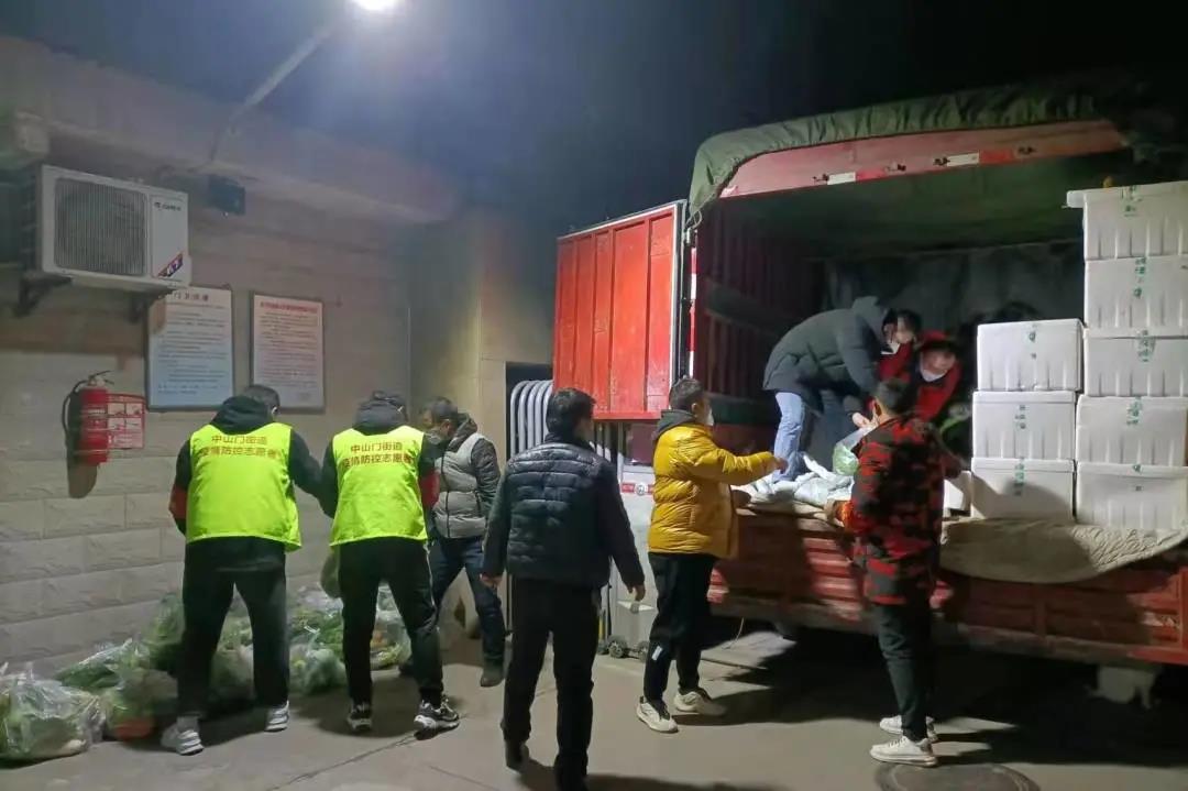 志愿者們在搬運生活物資。新城區委組織部供圖