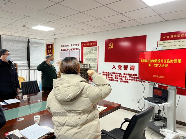 2022年1月6日,商貿園辦疫情防控片區臨時黨委在第一次擴大會議上重溫入黨誓詞。浐灞融媒體中心供圖