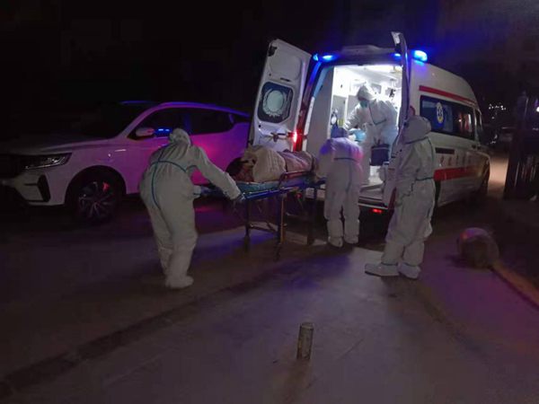 2022年1月14日,防疫人員將東方花園孕婦緊急送醫。浐灞融媒體中心供圖