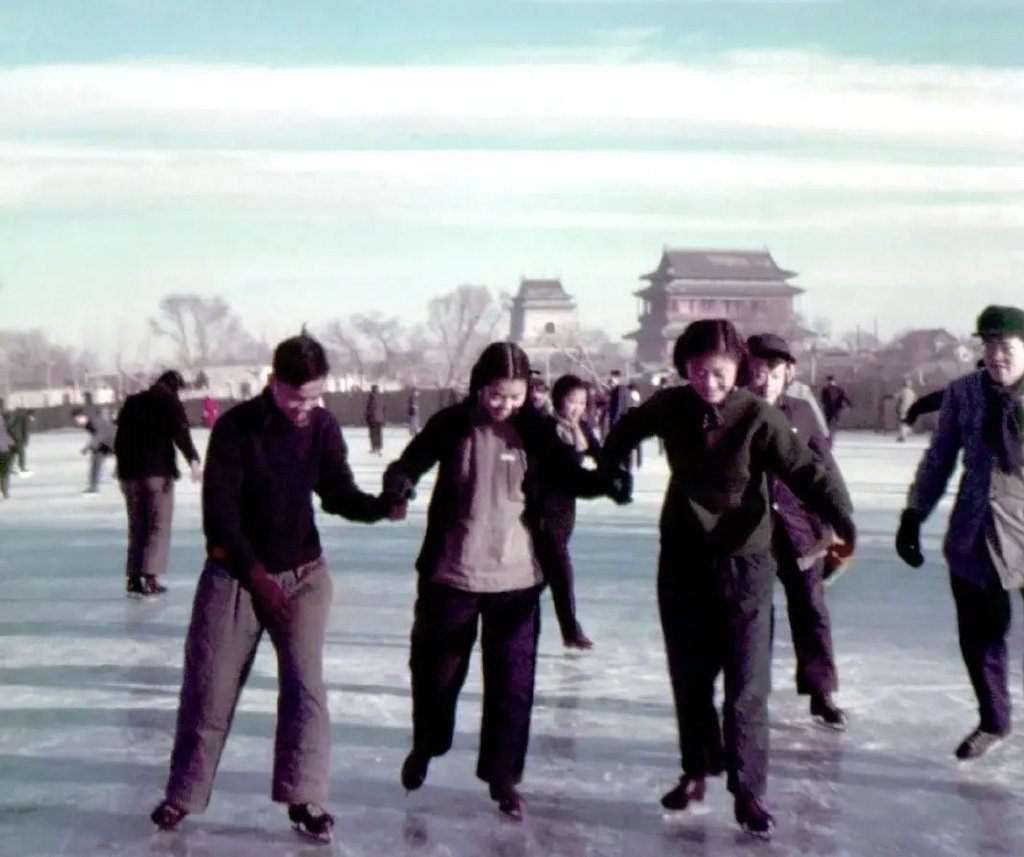 每到寒冬,滑冰愛好者就摩拳擦掌,帶上冰鞋冰刀,風風火火地往什剎海趕。冰場上,有的玩速滑、打冰球,有的溜冰畫葫蘆、拉手跑大圈兒,有的滑冰車、跳冰上芭蕾……那時,北京每年冬季有數萬人參加滑冰運動。1953年,什剎海冰場接待了7.8萬人。