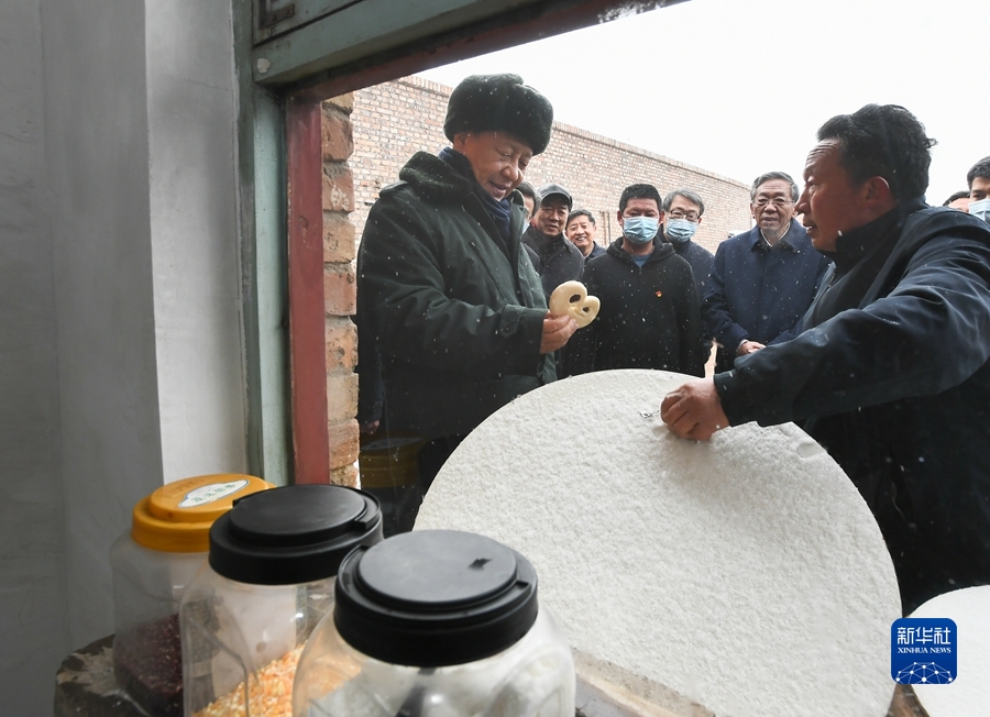26日下午,習近平冒雪來到臨汾市考察調研。去年10月,山西出現有氣象記錄以來最強秋汛,全省11市受災;糁菔袔熐f鄉馮南垣村是臨汾市農房受損較為嚴重的村莊之一,習近平專程來到這里看望慰問受災群眾。他聽取了山西災后恢復重建、秋冬補種、確保群眾安全溫暖過冬、加強防災減災和應急體系建設等情況匯報,隨后來到受災村民師紅兵家中看望。