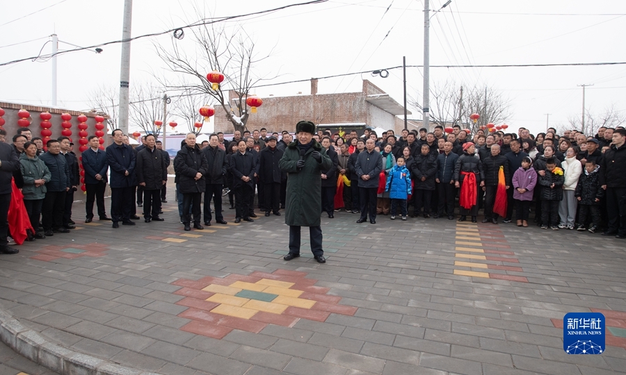 1月26日至27日,中共中央總書記、國家主席、中央軍委主席習近平來到山西,看望慰問基層干部群眾。這是26日下午,習近平在臨汾市汾西縣僧念鎮段村文化廣場,給鄉親們拜年,向全國各族人民、向港澳臺同胞和海外僑胞致以美好的新春祝福。新華社記者 謝環馳 攝