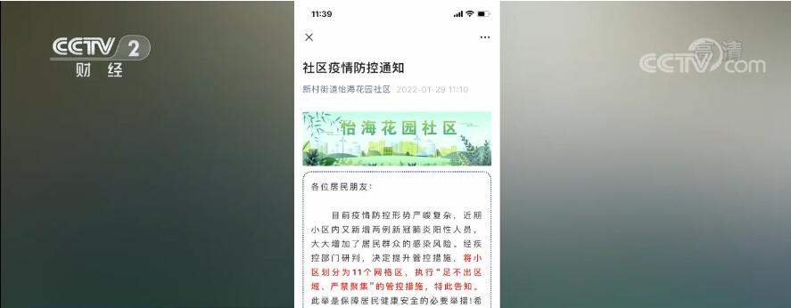 央視網消息:昨天(1月29日)11時左右,北京豐臺新村街道怡海花園社區發布通知,近期小區內又新增兩例新冠肺炎陽性人員,大大增加了居民群眾的感染風險。經疾控部門研判,決定提升管控措施。與此同時,社區也推出了多項措施,保障居民度過一個祥和的春節。