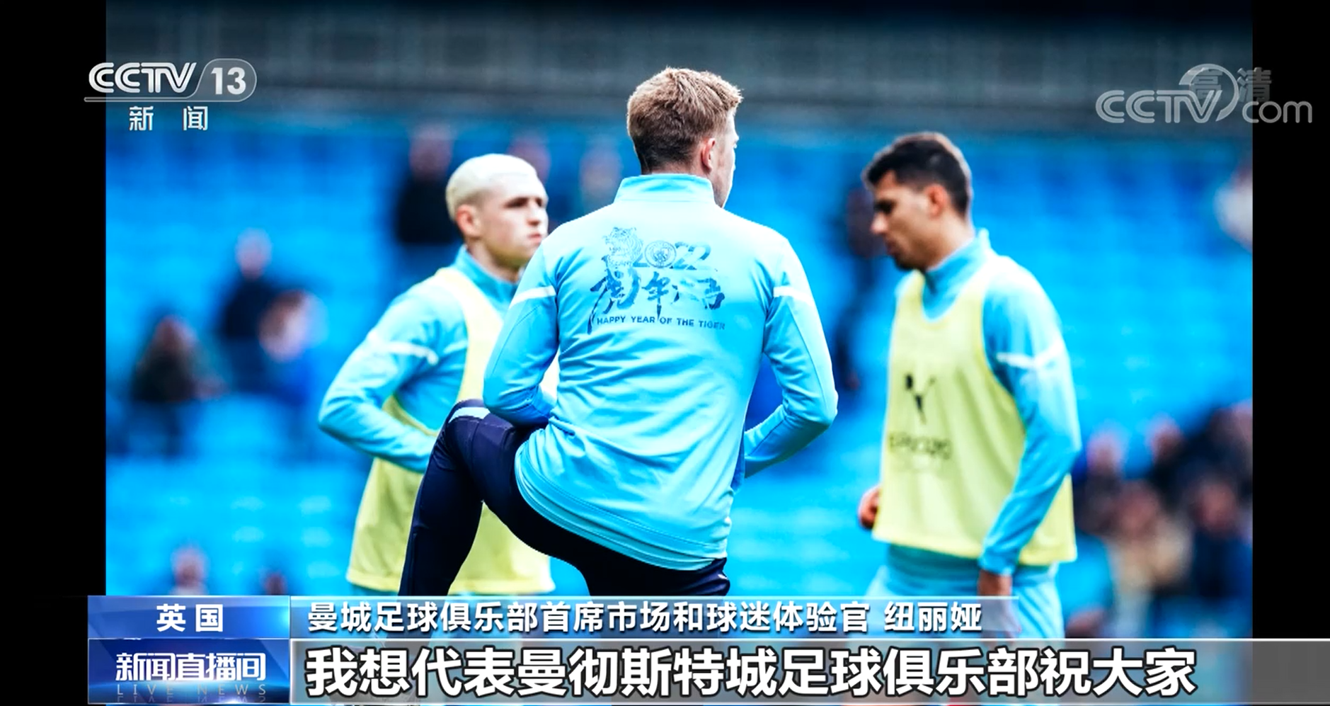 隨著中國虎年春節和北京冬奧會的臨近,英國曼徹斯特城足球俱樂部也為中國送上了祝福。在此前的比賽訓練期間,曼城球隊球員統一身著“虎年大吉”的訓練服。在比賽中,曼城主場的場邊廣告牌也打出了“城意滿滿,虎年大吉”的標語。