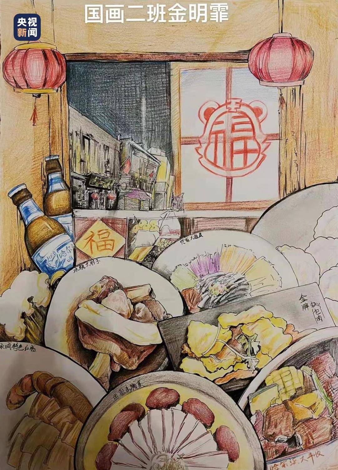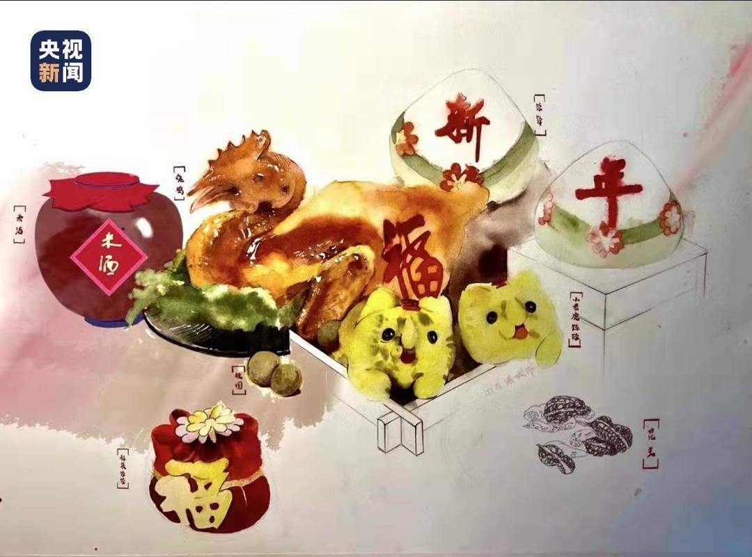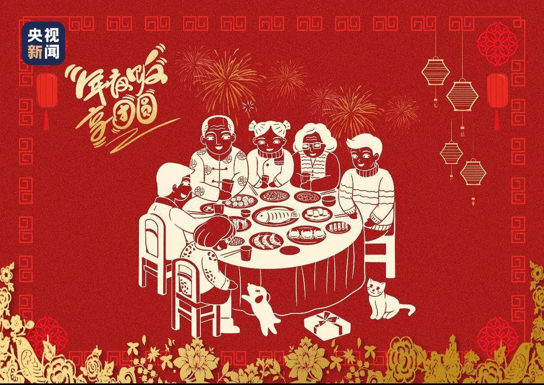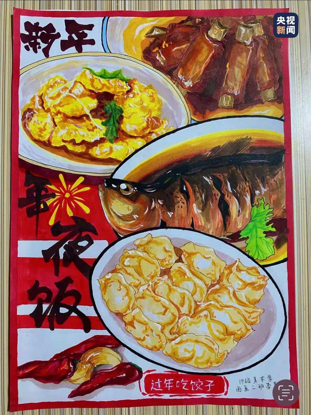 還有同學用剪紙的形式曬出家鄉的年夜飯