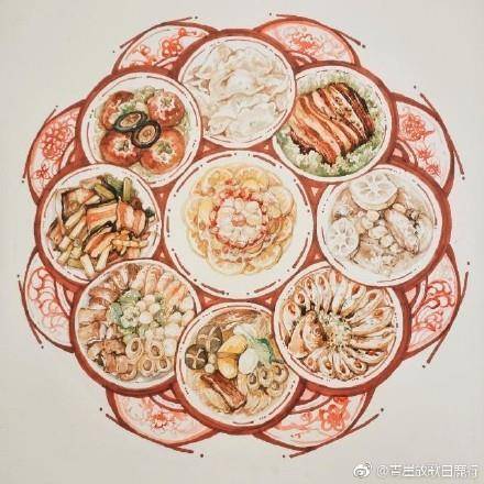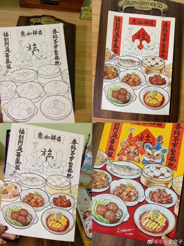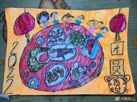 還有一些網友曬出了自家寶寶畫的年夜飯