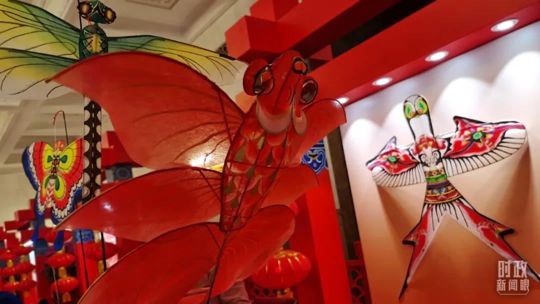 年畫(huà)、春聯(lián)、剪紙、風(fēng)箏、面塑、中國(guó)結(jié)、京劇臉譜、民樂(lè)合奏……這些從中國(guó)土地上長(zhǎng)出來(lái)的非遺作品,匠心獨(dú)運(yùn)、光彩照人,讓短短數(shù)十米的廊道化身為精華版的中國(guó)“廟會(huì)”。
