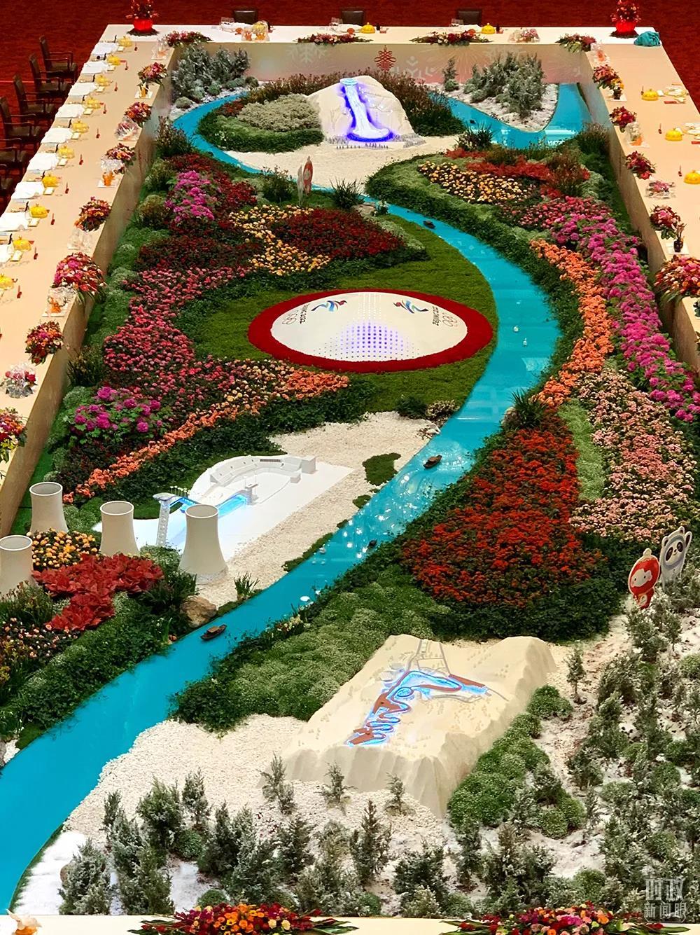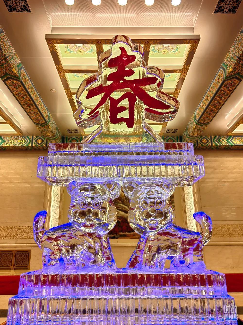 △宴會(huì)廳擺放的“春”主題冰雕。(總臺(tái)央視記者鐘鋒拍攝)