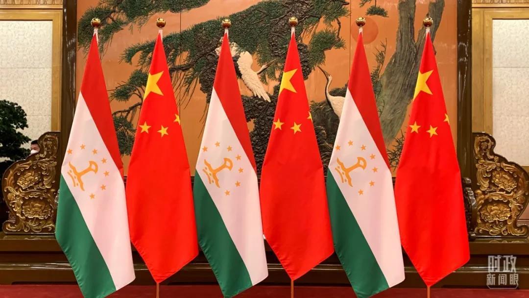 △塔吉克斯坦國(guó)旗與五星紅旗。(總臺(tái)央視記者段德文拍攝)