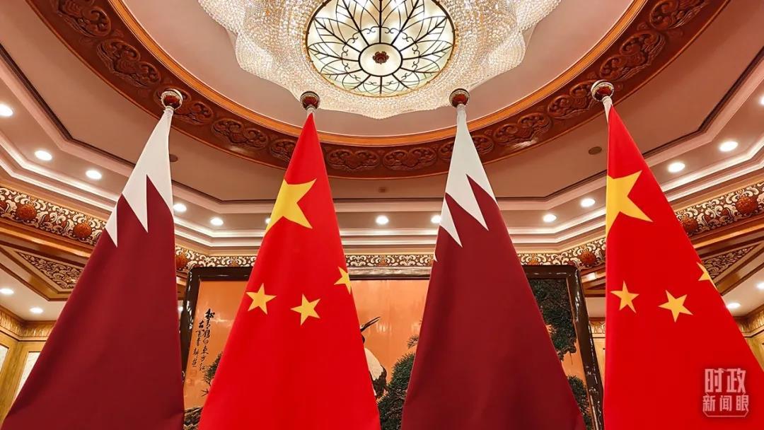 △卡塔爾國(guó)旗與五星紅旗。(總臺(tái)央視記者楊立峰拍攝)