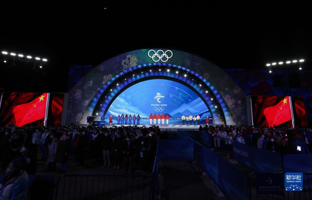 當日,北京2022年冬奧會短道速滑混合團體接力獎牌頒發儀式在北京賽區頒獎廣場舉行。