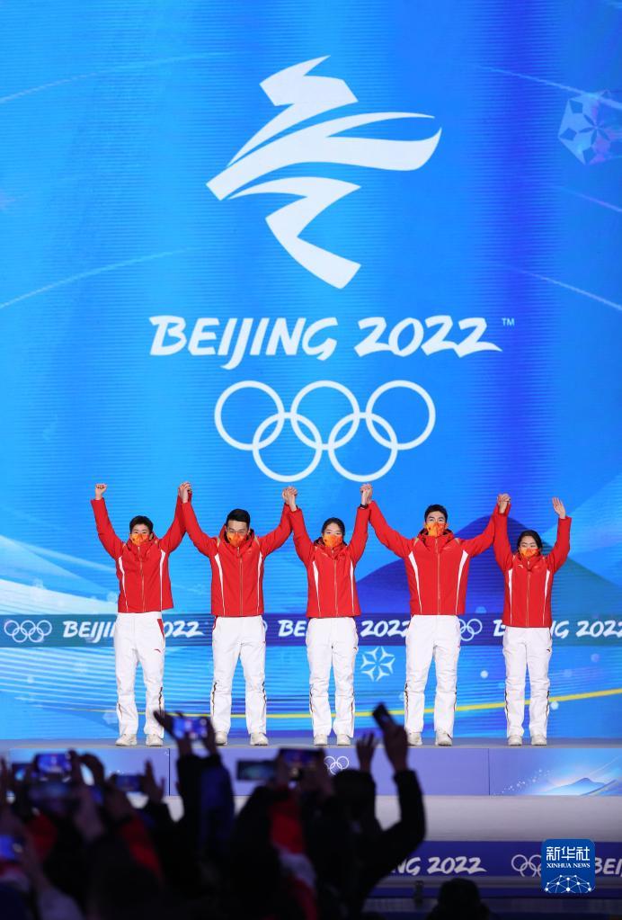 2月6日,北京2022年冬奧會短道速滑混合團體接力獎牌頒發儀式在北京賽區頒獎廣場舉行。