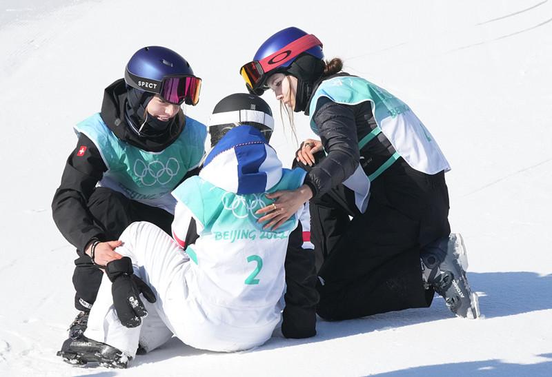 2月8日,2022北京冬奧會自由式滑雪女子大跳臺決賽,谷愛凌(圖右)安慰對手。(圖片來源:視覺中國)